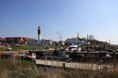 The Lutheran church in Kirchdorf contains a 15th-century altar and displays a model fishing boat from 1936, representing maritime traditions.