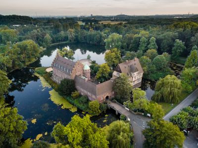 The medieval Wittringen Castle now functions as a museum complex, surrounded by 100 hectares of municipal forest that serves the community.