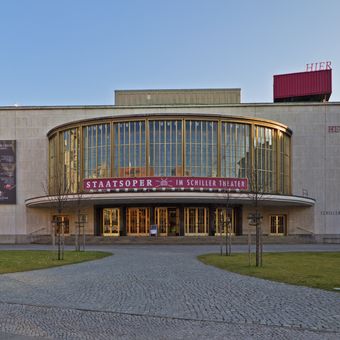 Schiller Theater sits on Bismarckstraße 110 near Ernst-Reuter-Platz and displays a large glass wall in the foyer alongside sculptures by Bernhard Heiliger. The building combines clean lines with bright surfaces and offers stage spaces inside that allow flexibility for changing productions.