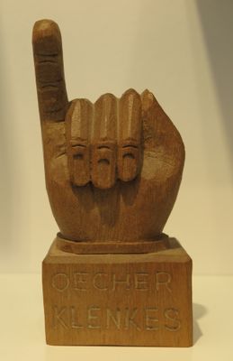 During the 19th century needle manufacturing period in Aachen, workers used their little fingers to sort defective needles, creating the Klenkes greeting tradition.