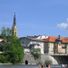 The market street climbs about 330 feet (100 meters) over a length of roughly 2,000 feet (600 meters) and is accompanied by numerous frescoes on house walls. Inside the Kalvarienberg church above the east bank sits a large 18th-century fresco cycle.