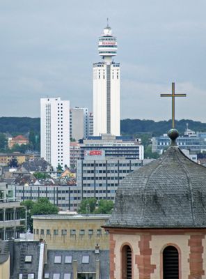 Henninger Turm, Grain silo in Sachsenhausen district, Frankfurt, Germany.