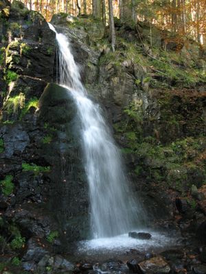 The hiking trail to reach the waterfall extends 4.75 kilometers from Gütenbach, requiring sturdy hiking boots due to steep and rocky terrain.