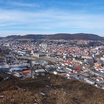 Ebingen is a district of Albstadt located in the Swabian Jura at an elevation of around 730 meters (2,400 feet). The area serves as a university campus with technical and computer science programs and sits among forested hills and valleys.
