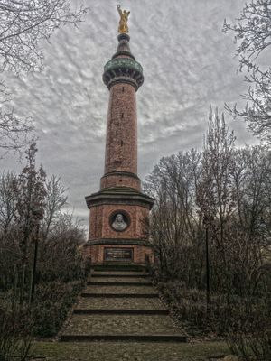 The Hakenberg Victory Column reaches 36 meters into the sky with brick and sandstone construction, featuring an observation deck at its summit.