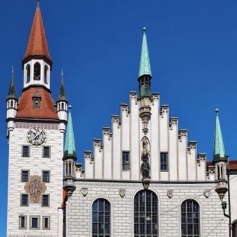 The Old Town Hall sits on Marienplatz, which is served by the U3 and U6 subway lines, all S-Bahn lines from S1 through S8, and bus line 52. The location is in Munich's old town center, so expect crowds during peak visiting times.