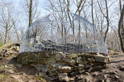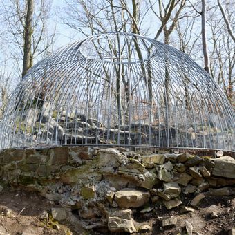 The circular rampart fortification stands on a hill spur northeast of Bad Münstereifel's center, measuring 300 meters long and 80 meters wide.