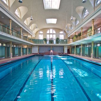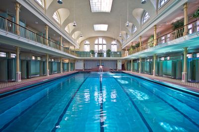 The facility contains two distinct swimming halls, originally designated as men's and women's areas, preserving the early 20th-century social arrangement.