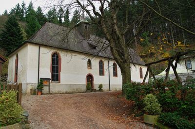 The church stands at 480 meters elevation in a clearing within the upper St. Odile ravine, featuring a spring integrated into its structure.