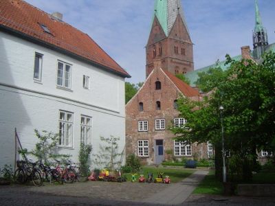 The Aegidienhof complex consists of 12 brick buildings arranged around a central courtyard between St. Annen Street and Weberstrasse in Lübeck.