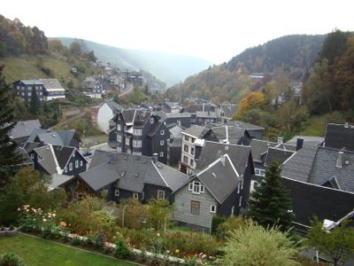 Lauscha sits at 625 meters elevation in a deep valley of the Thuringian Highland, surrounded by mountains reaching up to 835 meters.