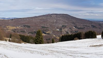 The northern side of the mountain features three ski lifts and multiple marked trails, allowing visitors to enjoy both winter sports and hiking.