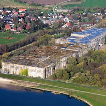 This submarine pen complex contains the largest free-standing bunker in Germany, covering more than 35,000 square meters of ground space.