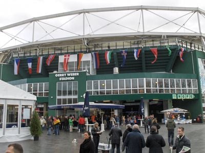The stadium connects to public transportation through the Halle Gerry-Weber-Stadion railway station, located 500 meters from the main entrance with 3,700 parking spaces available.