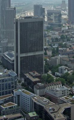 The building represents Frankfurt's transformation into a financial center, with international law firm Clifford Chance occupying multiple floors of office space.
