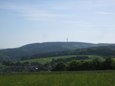A concrete tower on the summit broadcasts radio and television signals across the region and shapes the visual landscape distinctly. This structure can be spotted from many places in the surrounding countryside.