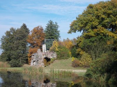 Wörlitzer Park is an English garden in Oranienbaum-Wörlitz that covers wide meadows, waterways, and wooded areas arranged around Lake Wörlitz. Five linked sections of the garden connect through canals, bridges, and paths lined with neoclassical buildings, temples, and pavilions scattered throughout.