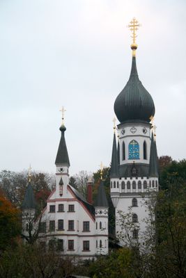 The Archiconvent der Templer features an 18-meter-high onion dome tower with four smaller towers and houses a bell system with 21 bells.
