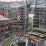 The development comprises several buildings arranged in a circular layout around a central courtyard, covered by a distinctive glass and steel canopy that illuminates in different colors at night and remains visible from Potsdamer Platz and surrounding streets.