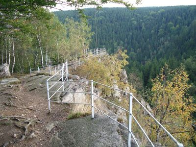 The Katzenstein mountain reaches an elevation of 706 meters and features multiple marked trails through dense forests in the Erzgebirge mountain range.