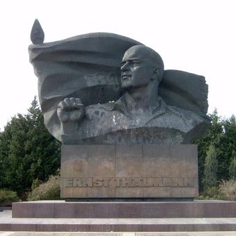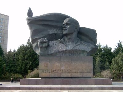 A 14-meter bronze monument of Ernst Thälmann, created by sculptor Lev Kerbel, stands in the park and has become a recognized spot for skateboarding.