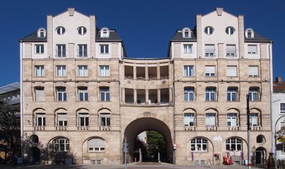 Architect Hermann Billing constructed these residences between 1900 and 1903, establishing a distinguished residential complex influenced by Parisian architectural models.
