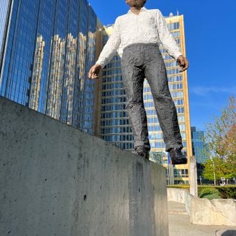 Balanceakt by Stephan Balkenhol, Bronze sculpture at Axel-Springer-Strasse, Berlin, Germany.