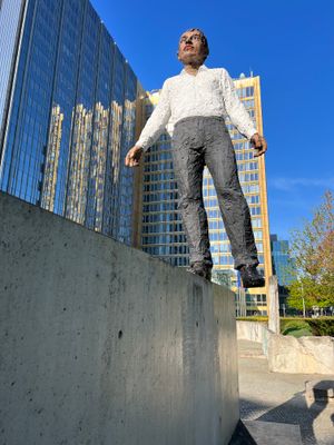 The sculpture represents the concept of balance, reflecting the challenges faced during German reunification and the fall of the Berlin Wall.