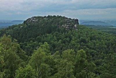 The mountain exhibits a flat tabletop structure with vertical walls, forming part of a series of elevated plateaus in the Saxon Switzerland National Park.