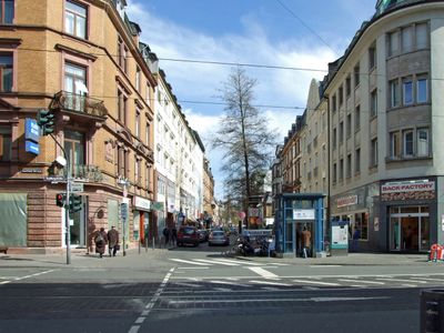 The street has evolved from a traditional marketplace into a central commercial corridor connecting Frankfurt's eastern districts to the city center.
