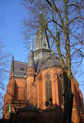 The church construction began in 1876 after delays caused by the Austro-Prussian War, with architect Johannes Otzen completing it in 1879.
