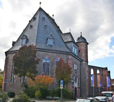 The Walloon-Dutch Church is an early 17th-century church building standing in central Hanau that combines remains from two distinct sections. The Walloon wing displays original ruins, while the Dutch section was reconstructed after World War II.