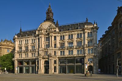 The Bernheimer-Haus is a neo-baroque residential building at Lenbachplatz in Munich, designed in 1889 by Friedrich von Thiersch and Martin Dülfer. The structure features an elaborate facade with ornamental details and stone work that exemplify the architectural style of that era.