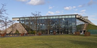 Biosphäre Potsdam is an indoor botanical garden filled with tropical plants and wildlife located in the city. Multiple sections like a palm grove, mangrove swamp, and two lakes with waterfalls showcase different ecosystems.