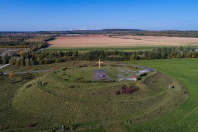 The field contains the Pope Hill, which required 200 trucks per day during construction to create a central focal point for the 2005 World Youth Day Mass.