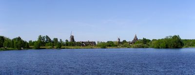 A Russian Orthodox stave church dedicated to Saint Nicholas stands on the grounds, adding religious architecture to the technical exhibits.