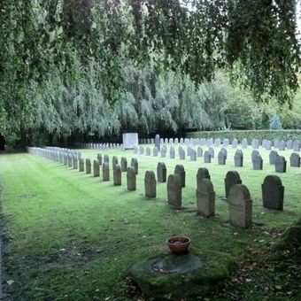 The site incorporates former shooting range earthen walls that were originally used to catch ammunition before the cemetery's establishment.