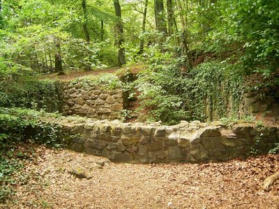 Visitors can reach the ruins from the former Märchenwald parking lot, following a steep forest path that leads to information panels about the site.