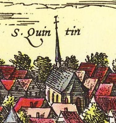 An alley named 'An St. Quintin' between the current business building and St. John the Baptist parish church preserves the memory of this structure.