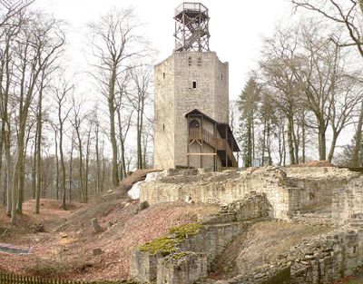 The castle remains represent traditional German defensive architecture and construction methods, with remnants of fortified walls and structural elements still visible.