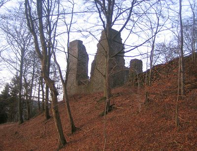 Burgruine Schönstein, Medieval castle ruin in Schönau, Gilserberg, Germany.