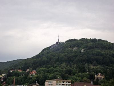 Below the castle tower lies the Hexenküche cave, adding a geological element to the historical fortification structure.