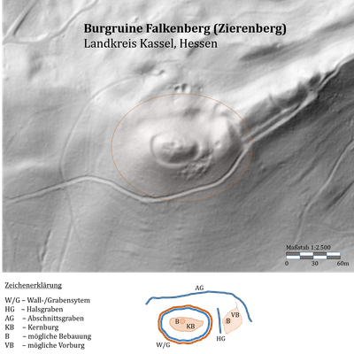 The stone remnants of Burgruine Falkenberg stand on a hill, featuring foundation walls and portions of the original defense structures.
