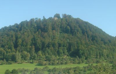 The Hiltenburg is a castle ruin perched on Schlossberg mountain near Bad Ditzenbach at approximately 717 meters elevation. The site retains stone wall sections and a well-preserved keep that now serves as an exhibition space.
