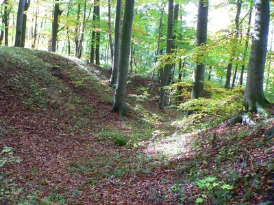 The Igelsburg castle remains stand on a 466-meter basalt hill near the upper course of the Ahne river in Habichtswald Nature Park.