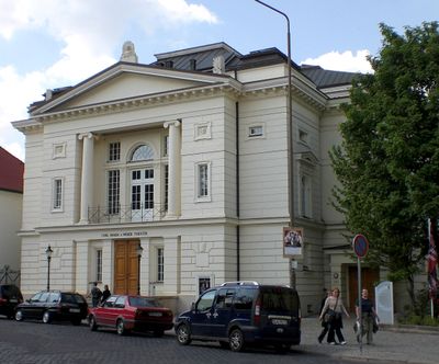 The Carl-Maria-von-Weber-Theater features traditional architectural elements, including a grand entrance hall and multiple performance spaces for different types of productions.