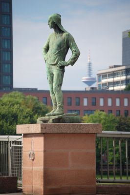 Der Hafenarbeiter, Bronze statue at Friedensbrücke, Frankfurt, Germany.