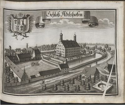 Wasserschloss Adelshofen was a water castle that stood behind the current town hall and was once surrounded by moats protecting the fortified structure on all sides. Visitors can still see the preserved tithe barn from 1688 at the original castle location.