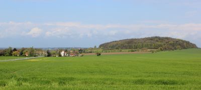 The Strohmberg mountain rises to 264 meters above sea level in southeastern Germany, featuring natural trails through varied geological formations and wooded areas.