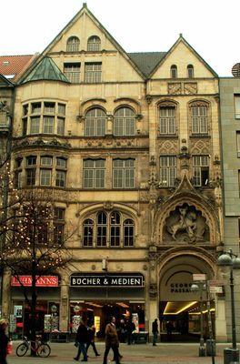 The building incorporates the Georgspassage, creating pedestrian pathways that connect various streets within the commercial district of Hannover.